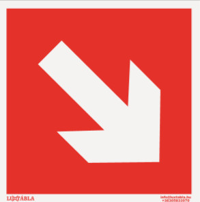 A Luxtábla – Iránynyíl, jobbra, le piktogram egyértelmű és jól látható jelölést biztosít a tűzvédelmi előírások, figyelmeztetések vagy vészhelyzeti információk feltüntetésére. A tábla segíti az épületben tartózkodók gyors tájékozódását, valamint hozzájárul a tűzvédelmi szabályok betartásához.