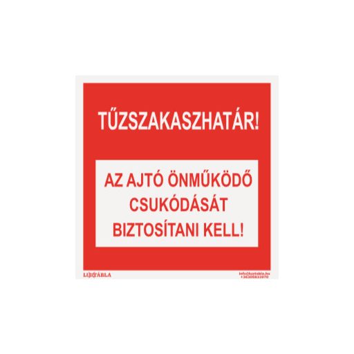 Tűzszakaszhatár, az ajtó önműködő csukódást biztosítani kell! matrica, felirat, ISO 7010