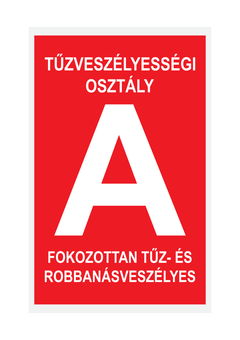 A Luxtábla – Tűzveszélyességi osztály "A" felirat egyértelmű és jól látható jelölést biztosít a tűzvédelmi előírások, figyelmeztetések vagy vészhelyzeti információk feltüntetésére. A tábla segíti az épületben tartózkodók gyors tájékozódását, valamint hozzájárul a tűzvédelmi szabályok betartásához.