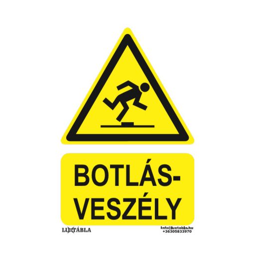 A Luxtábla Botlásveszély jelölő piktogram + felirat ideális megoldás minden olyan helyen, ahol fontos a szabványos, jól látható figyelmeztető jelzés egyértelmű megjelenítése és a potenciális veszélyek időben történő felismerése.