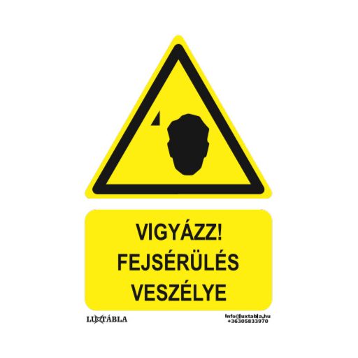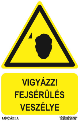 A Luxtábla Vigyázz! Fejsérülés veszély jelölő piktogram + felirat ideális megoldás minden olyan helyen, ahol fontos a szabványos, jól látható figyelmeztető jelzés egyértelmű megjelenítése és a potenciális veszélyek időben történő felismerése.