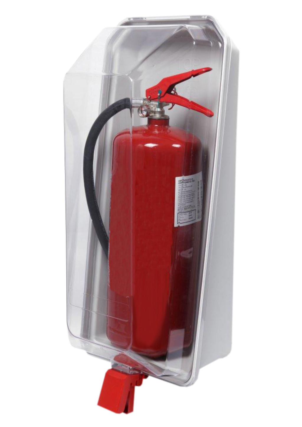Az átlátszó tartó doboz hozzájárul a tűzoltó készülékek folyamatos ellenőrizhetőségéhez és biztosítja, hogy azok mindig azonnal rendelkezésre álljanak szükség esetén.