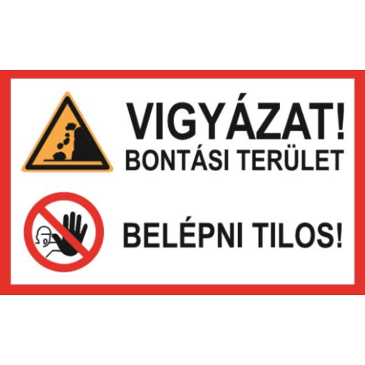 Szabványos Vigyázat, bontási terület, belépni tilos! piktogram + felirat