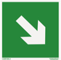 A Luxtábla utánvilágító iránynyíl, le, jobbra piktogram speciális fotolumineszcens pigmenteket tartalmaz, amelyek természetes vagy mesterséges fény hatására feltöltődnek, majd sötétben zöldes-sárgás fényt bocsátanak ki.
