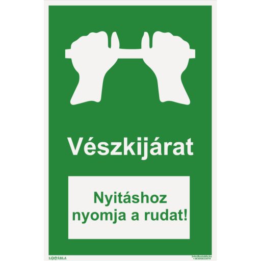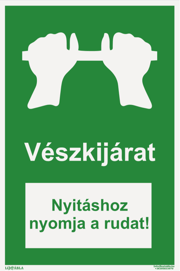 A Luxtábla nyitáshoz nyomja a rudat! utánvilágító piktogram + felirat ideális megoldás minden olyan helyen, ahol fontos a szabványos, sötétben is jól látható menekülési irányjelzés biztosítása.