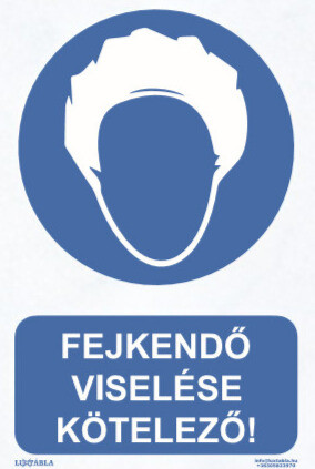 A Luxtábla Fejkendő viselése kötelező! piktogram + felirat ideális megoldás minden olyan helyen, ahol fontos a szabványos, jól látható utasító jelzés egyértelmű megjelenítése és a munkavédelmi előírások következetes betartatása.
