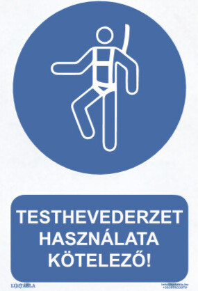 ISO szabvány szerinti Testhevederzet használata kötelező! piktogram + felirat
