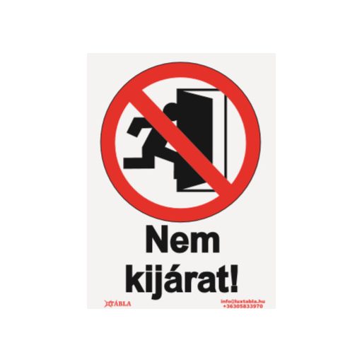 A Luxtábla Nem kijárat! jelölő piktogram + felirat ideális megoldás minden olyan helyen, ahol fontos a szabványos, jól látható tiltó jelzés egyértelmű megjelenítése és a veszélyes vagy nem megengedett tevékenységek hatékony megelőzése.
