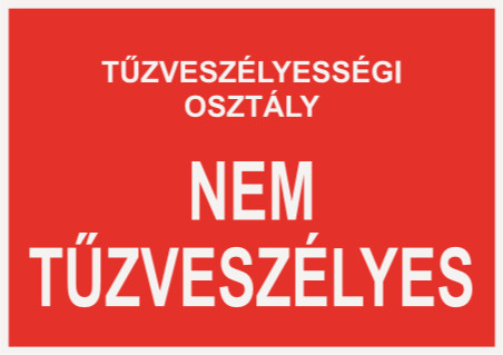 Luxtábla – Tűzveszélyességi osztály, nem tűzveszélyes! felirat (tábla)