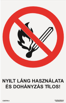 ISO szabvány szerinti Nyílt láng használata és dohányzás tilos! piktogram + felirat