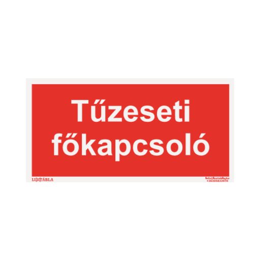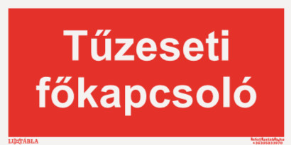 A Luxtábla – Tűzeseti főkapcsoló felirat egyértelmű és jól látható jelölést biztosít a tűzvédelmi előírások, figyelmeztetések vagy vészhelyzeti információk feltüntetésére. A tábla segíti az épületben tartózkodók gyors tájékozódását, valamint hozzájárul a tűzvédelmi szabályok betartásához.